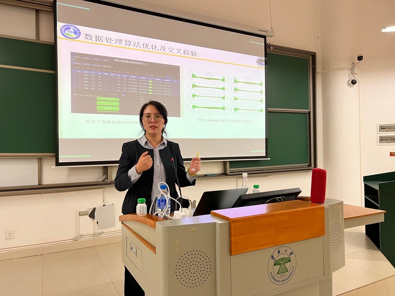 图1 泽仁志玛研究员介绍卫星数据处理算法优化及交叉检验