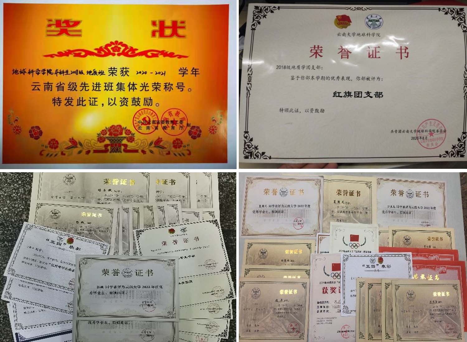 取得这样的成绩离不开点滴的积累,全班同学的共同努力将“偶然”变成了“必然”。在院系领导的关心和班主任李婉婷老师、辅导员韩雪老师的带领下,2018级地质班曾先后荣获“云南省级先进班集体”、“伟德bv1946先进班集体”、“伟德bv1946红旗团支部”等荣誉称号,树立了“和谐友爱、脚踏实地、团结奋进、拼搏创新”的优良班风和学风。全班综合测评加权平均成绩连续3年超过80分,且全员通过毕业资格审核,在各项评奖评优、学术竞赛和科研训练中取得了丰硕的成果。学习之余,班上同学还积极参加各项公益活动和志愿服务。