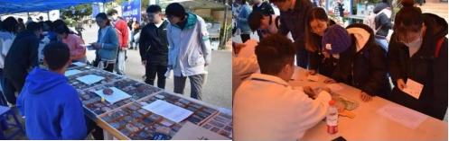 2021年11月26日12:30—28日18:30,“石”志不渝科普活动在知味堂门口举行。活动向大家展示了形态各异的岩石矿物标本,各种远古生物的化石标本,也让参与的同学体验了各种地质工具的使用。除此之外,活动还设置了“夹弹珠”等趣味游戏,让同学们在游戏中有所收获。