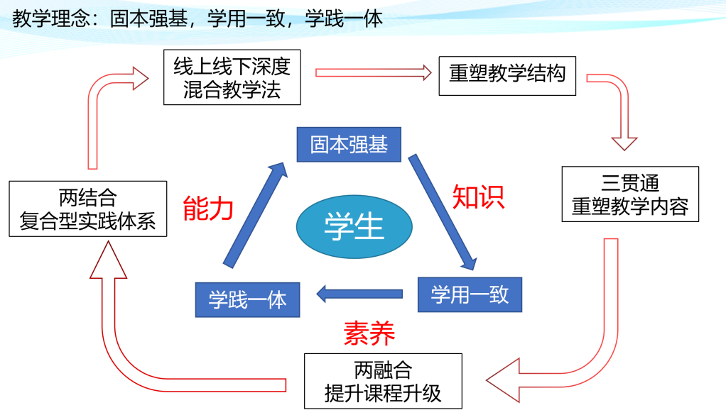 课程秉持“固本强基,学用一致,学践一体”的教学理念,以员工为中心,利用线上线下深度混合教学法,开展三位一体前端分析。利用自建慕课提供线上线下衔接互补的丰富教学资源,设计了高效交互的学习活动,注重发挥信息技术在教学中的增值作用。