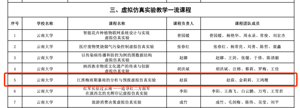 根据2024年3月云南省教育厅发布《云南省教育厅关于第三批省级一流本科课程拟认定名单的公示》的公示结果,bevictor伟德官网大气科学系的夏兰和赵荻两位老师讲授的课程荣获云南省省级一流本科课程称号。这两门课程分别是夏兰老师的《雷达气象学》和赵荻老师的《江淮梅雨期暴雨的分析与预报虚拟仿真实验》。