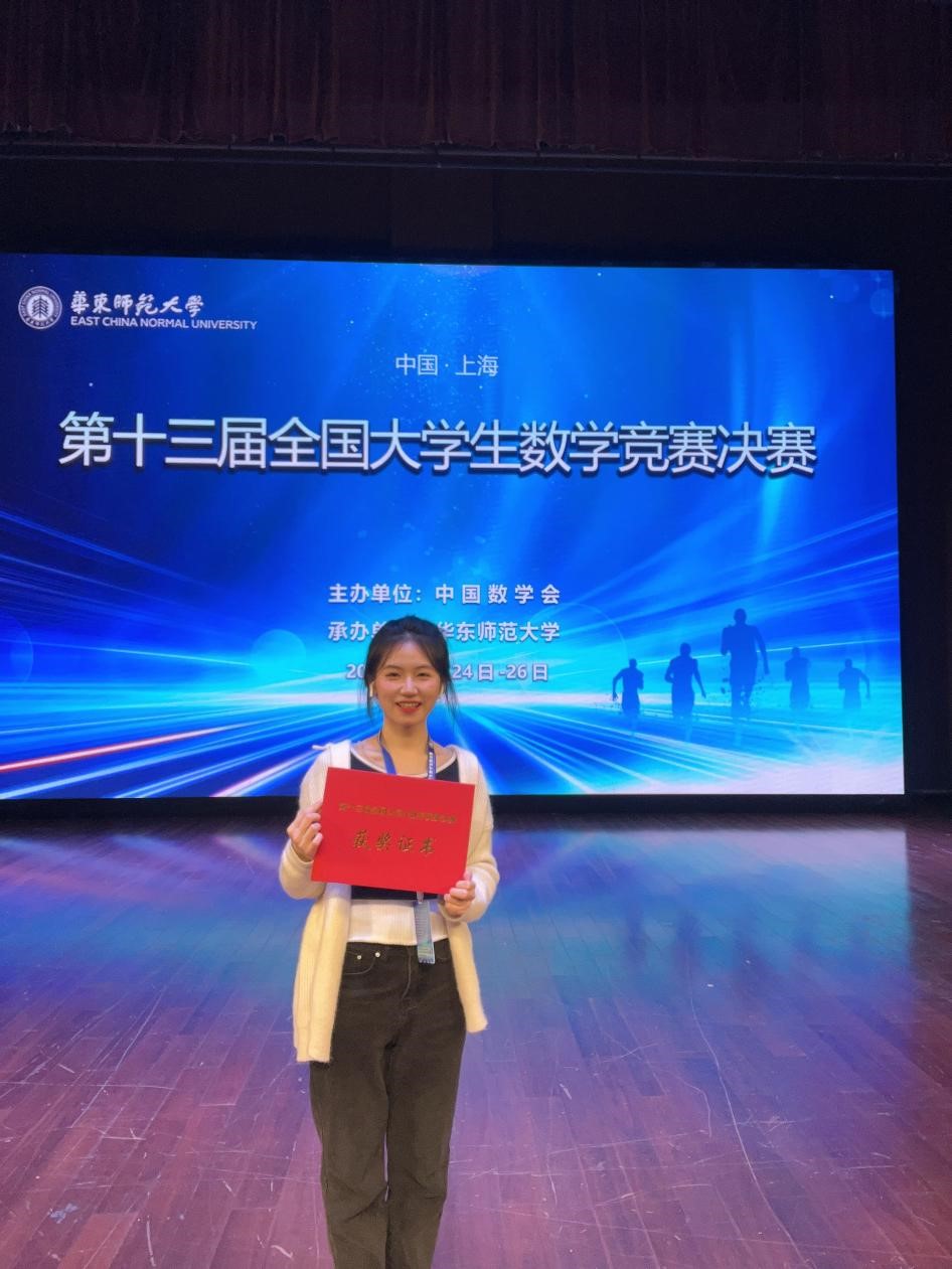 3月25日-26日,延期一年的第十三届全国老员工数学竞赛决赛在上海华东师范大学举行。经过激烈的角逐,我系2018级专业班周卓雅同学获得非数学类决赛全国三等奖。