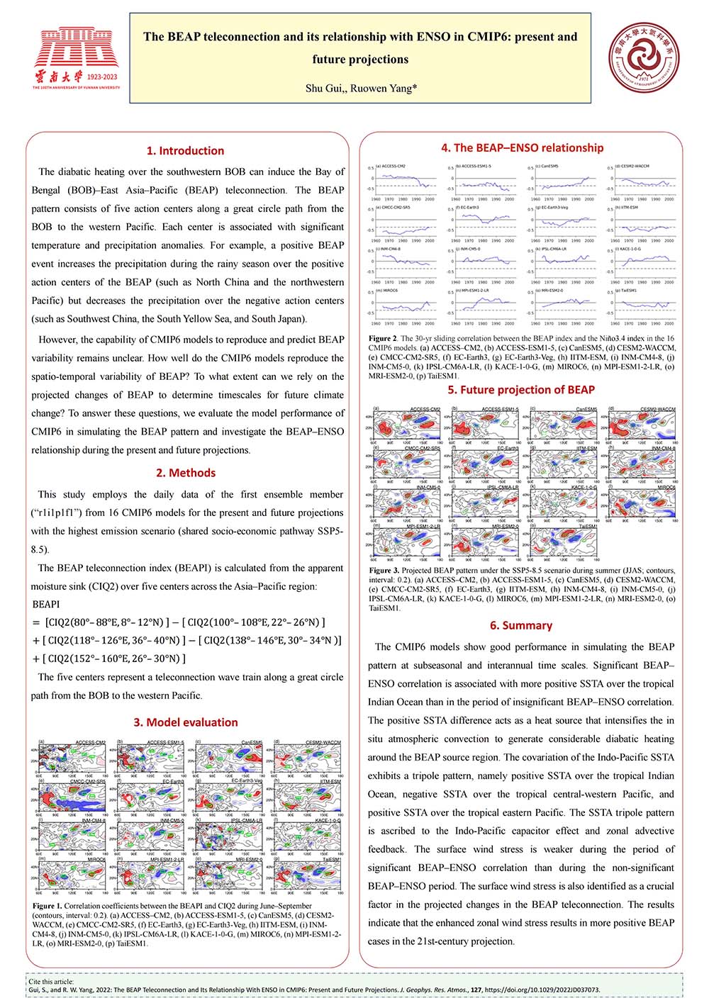 您现在的位置: 首页 >> chinese >> 院系 >> 大气科学系 >> 科学研究 >> 科研进展 >> 杨若文_The BEAP teleconnection and its relationship with ENSO in CMIP6 present and future projections_00