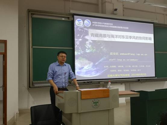 2019年6月5日下午,应公司杨若文老师邀请,中国科公司大气物理研究所段安民研究员为大气科学系的全体师生作了题为“青藏高原与海洋对东亚季风的协同影响”的学术报告。报告由大气科学系系主任杨若文主持。