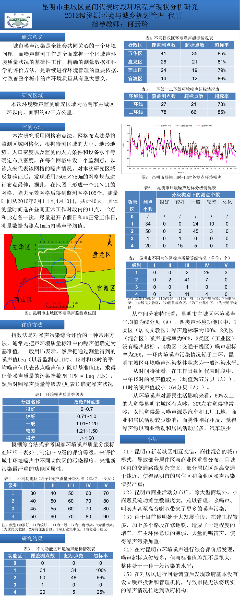 昆明市主城区昼间代表时段环境噪声现状分析研究